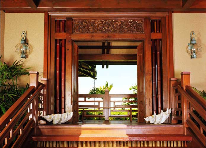 Situated on a quiet beach on the north side of Kauai, the clients wanted a tropical Asian feel for their residence. The residence was elevated three feet to alleviate damage from potential tsunamis.