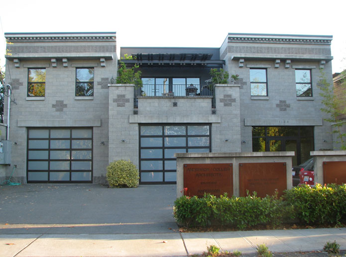 Anderson/Collier Architects approached the design of their Ballard office building much differently than their traditional residential style. The concrete block structure is the home for both their design offices and the shop/warehouse for Anderson Construction.