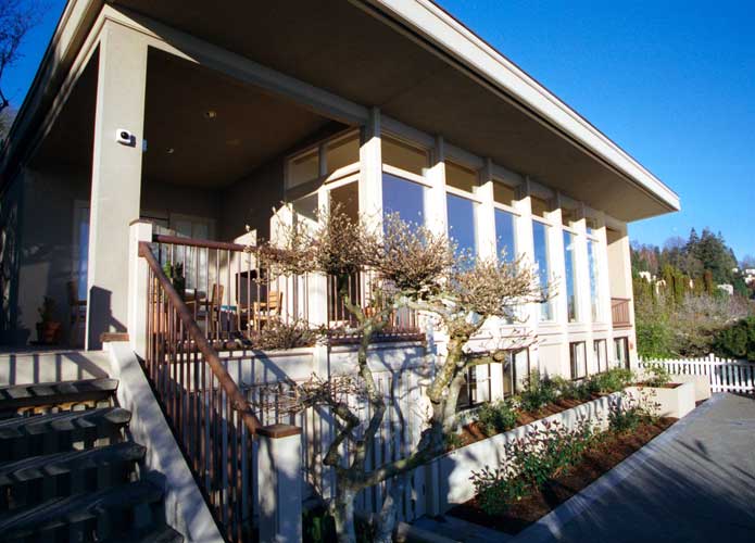 This remodel and addition of an existing residence on Lake Washington respected the contemporary Northwest style of the original architects William Bain and Harrison Overturf and was completed by Anderson Construction.
